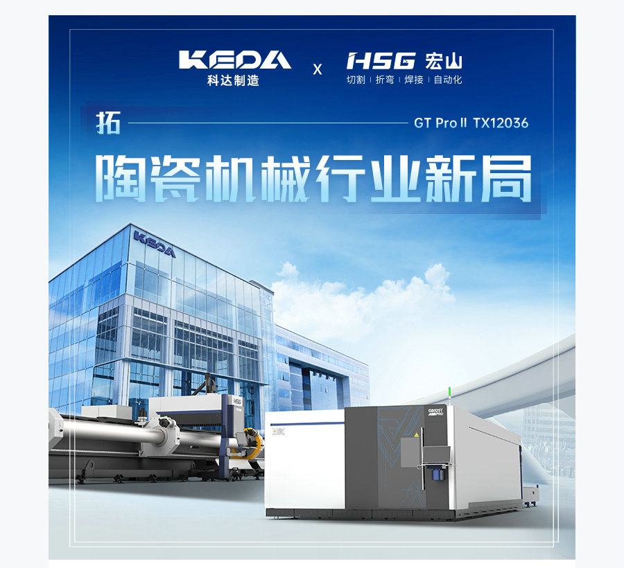 高功率產(chǎn)品矩陣中萬瓦實力干將G8025T ProⅡ高功率激光切板機搭載宏山激光總線三位一體技術(shù)(總線激光器、P10總線切割頭、AlphaT總線控制系統(tǒng)),從而實現(xiàn)中厚板批量穩(wěn)定切割。榮獲國家發(fā)明專利(ZL 2021 1 0887123.1)的TX12036重載型激光切管機具備型材榫頭切割工藝,專治工字鋼、H型鋼、槽鋼等型材,能實現(xiàn)切割后拼接斗榫合縫,咬合密實,符合科達制造對陶瓷機械生產(chǎn)的工藝要求。